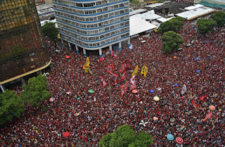 A torcida carioca do Flamengo dá um espetáculo de manifestação pública em comemoração ao merecido título de campeão da Taça Libertadores da América.