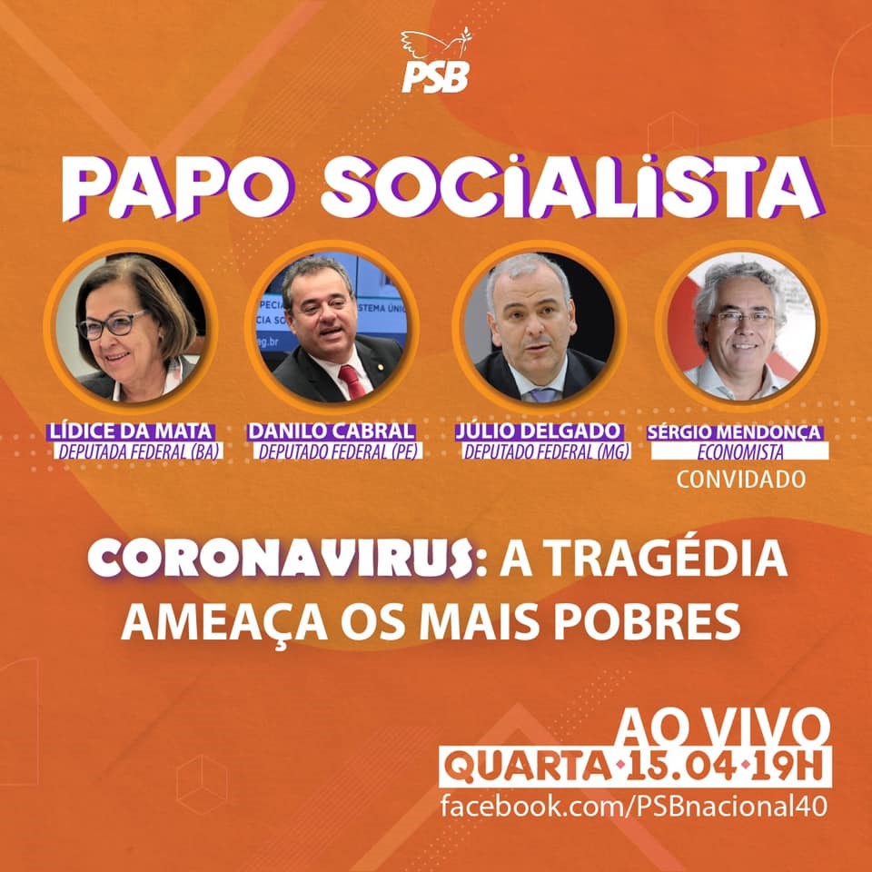 Ontem à noite, dia 15/04/2020 o PSB nacional promoveu uma live onde o tema foi: CORONAVIRUS: A tragédia ameaça os pobres.