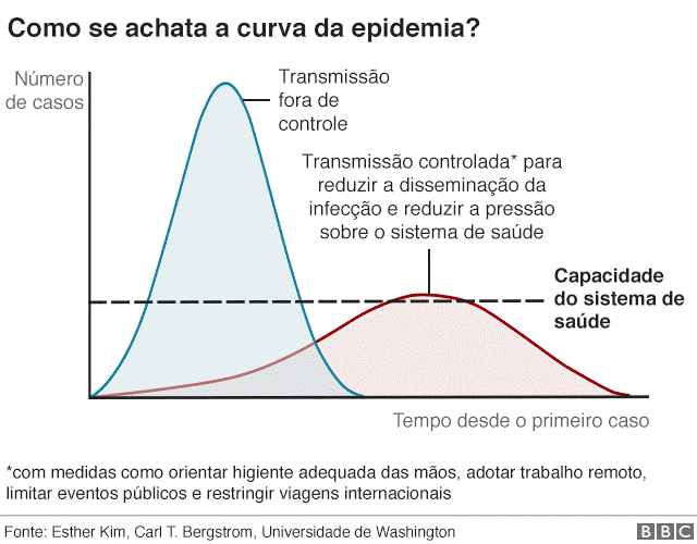 A curva rosa por sua vez, representa o controle horizontal, tem uma amplitude maior, tem um impacto maior na economia, mas paradoxalmente reduz a disseminação da infecção e reduz a pressão sobre o sistema de saúde evitando o colapso. Do atendimento e da economia.