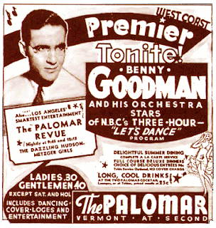 No início de 1935, os Estados Unidos viviam o apogeu da Era do Rádio. Nas noites dos sábados, a rádio N.B.C., de Nova York, transmitia “Let’s Dance”, um programa de alcance nacional, de três horas de duração, em que várias orquestras de dança se apresentavam, ao vivo, no auditório da emissora. Uma das orquestras, que era liderada por um jovem clarinetista de 26 anos chamado Benny Goodman, se destacava das demais pelo som contagiante que produzia.