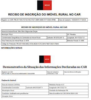 | Recibo de Inscrição e Demonstrativo de Situação do Cadastro Ambiental Rural. |