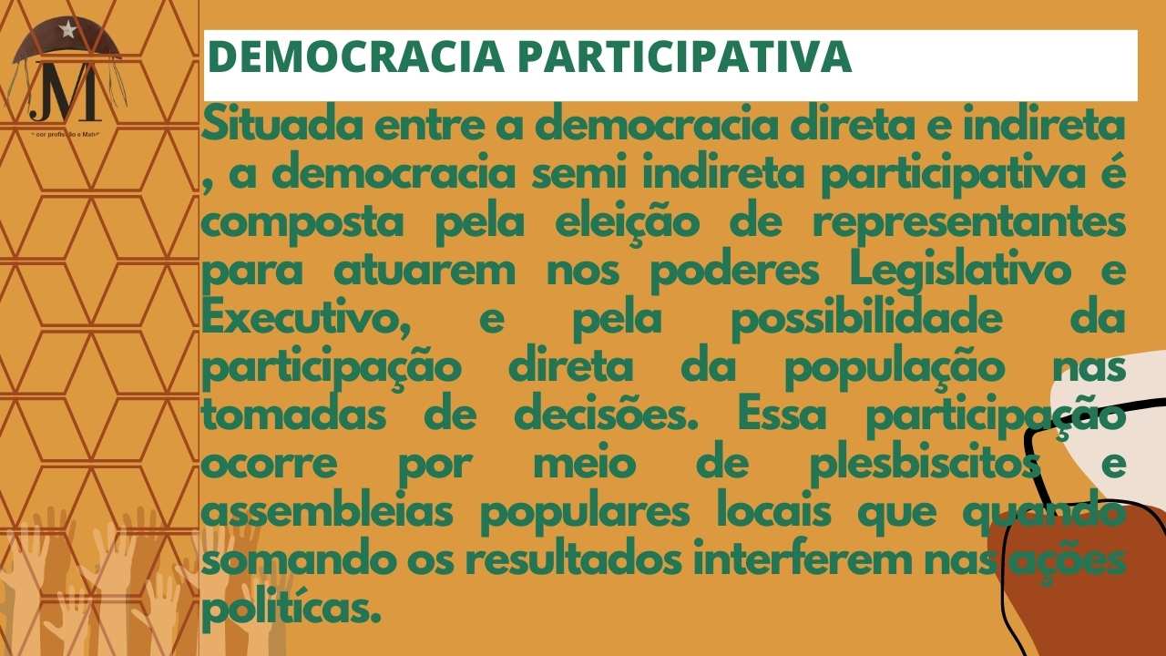 Estou prestes a fazer 16 anos e por direito já poderei votar nas próximas eleições, mesmo sendo facultativo, é do meu interesse exercer meu papel como cidadã ajudando a eleger os próximos governantes do meu pais. Graças a democracia no Brasil tenho essa opção, você sabe o que é democracia?