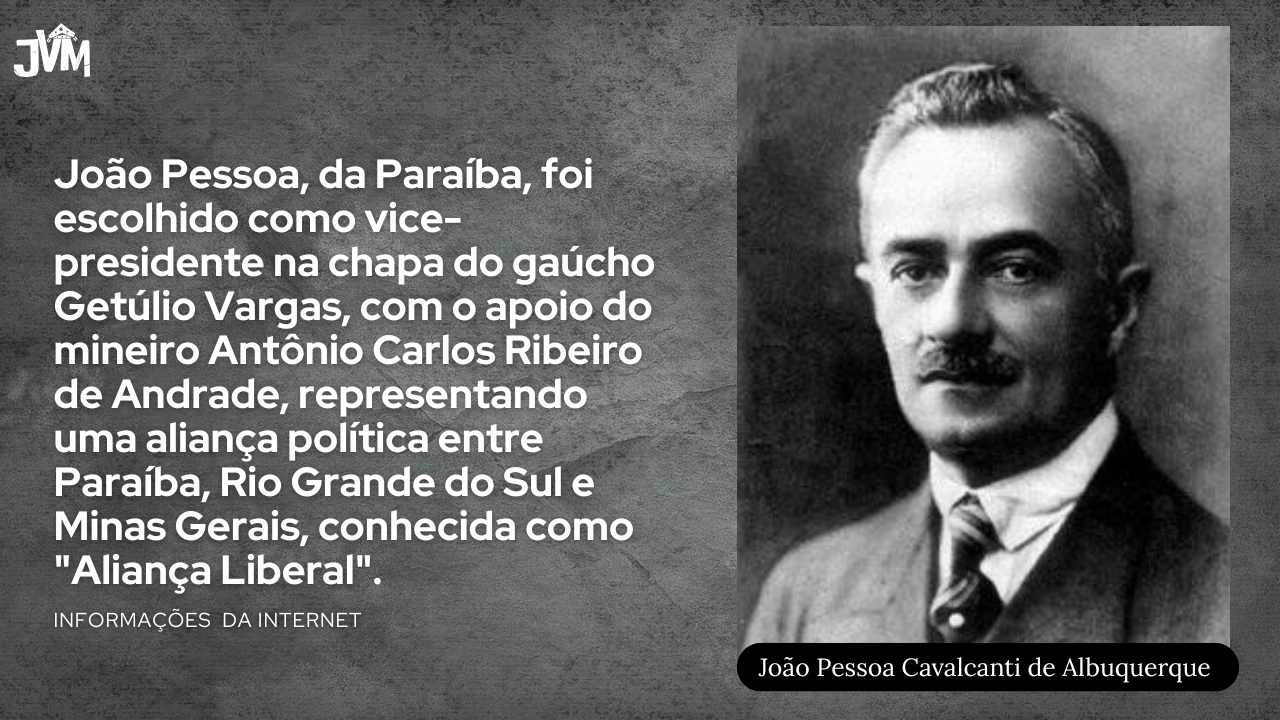 Decidida sua candidatura para enfrentar a chapa oficial, Getúlio precisava de um vice. Uma consulta feita por Washington Luiz sobre o apoio ao nome de Júlio Prestes, então presidente de São Paulo, para seu sucessor, recebera a aprovação da ampla maioria dos estados. Minas, de Antonio Carlos, a Paraíba, de João Pessoa e o Rio Grande, juntos, adotaram o NEGO paraibano e passaram a compor a chamada Aliança Liberal que apresentaria a chapa Getúlio presidente, João Pessoa, vice. Antes de se chegar ao nome de João Pessoa, sondaram Paulo de Frontin, senador pelo Distrito Federal e grande prefeito do Rio. Alegando ser amigo do Presidente, aderiu a Júlio Prestes. Outro consultado foi o Simões Filho, líder da bancada baiana na Câmara e fundador do jornal A Tarde. Este recusou, veementemente, e foi acusado por João Neves da Fontoura, líder gaúcho, de estar negociando para a Bahia a mesma posição na chapa oficial em troca de favores inconfessáveis. Chegaram aos empurrões. O vice escolhido foi o presidente dos baianos, Vital Soares. Subindo o mapa do Brasil, os emissários de Getúlio ainda procuraram Estácio Coimbra, presidente de Pernambuco. A sua negativa levou ao nome de João Pessoa, destacado governante da Paraíba que ganhara o noticiário nacional com medidas austeras e práticas inovadoras, enfrentando a política dos coronéis. “Só uma vassourada em regra pode purificar a vida pública, rebaixada por figuras sem significação e aproveitadores gulosos”, diria. Terminaram por varrê-lo.