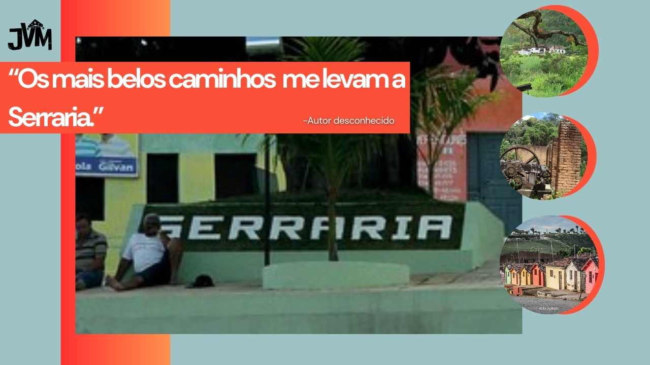 Chegando a Serraria, no lugar mais alto do mirante, ou mais adiante, somente avistamos paisagem que o sol iça; é quando o banzo se afasta. As terras de Serraria têm poentes vertidos com luz penetrante nos declives e nos recurvos menores, que se tornam paisagem na memória.