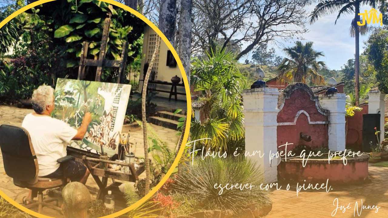 Flávio é um poeta que prefere escrever com o pincel. A poesia está impregnada na sua alma, porque vem do redor de sua casa, exalada das flores de jardim carinhosamente regado por Alba, a sua musa inspiradora.