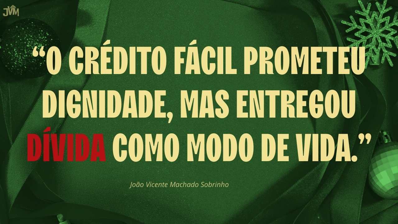 O crédito fácil, entronizado como uma política compensatória da desigualdade, tem conduzido as famílias a um nível de endividamento endêmico, transformado a dívida em condição permanente de vida. O discurso meritocrático aplicado ao consumo transfere ao consumidor toda culpa, ao mesmo tempo em que oculta as escolhas politicas que sustentam o modelo.