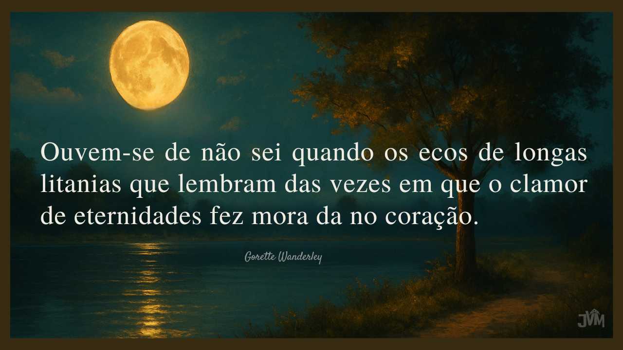 Ouvem-se de não sei quando os ecos de longas litanias que lembram das vezes em que o clamor de eternidades fez morada no coração. Vozes sem conta invadem gradualmente a trilha dos valores e, de hora a outra, tudo pode significar um senso de perfeição nos verões que chegam ao fim e desaparecem no céu.