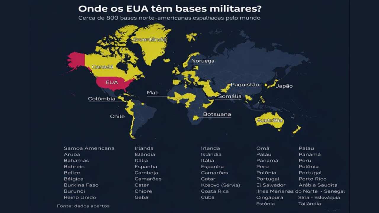 Os Estados Unidos operam hoje em dia a maior e mais sofisticada estrutura militar da história da humanidade, dispondo de mais de setecentas e oitenta bases militares, distribuídas pelo planeta, um orçamento bélico superior ao de dezenas de países somados, além de uma capacidade de projeção global imediata. Essa não é apenas uma máquina defensiva; ela tem servido para sustentar uma política externa baseada na intimidação, no cerco geopolítico, na punição e no bloqueio econômico mundial.