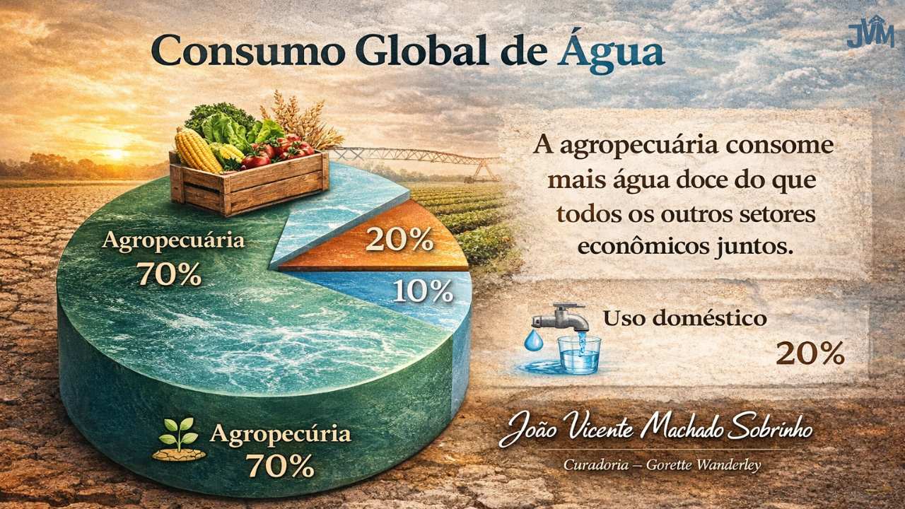 Segundo relatório da UNESCO (2023), a demanda mundial por água, tem crescido em ritmo superior ao crescimento demográfico. A agropecuária responde por cerca de 70% do consumo global de água doce, o que evidencia a centralidade e importância do debate sobre a sustentabilidade hídrica e o futuro das próximas gerações.