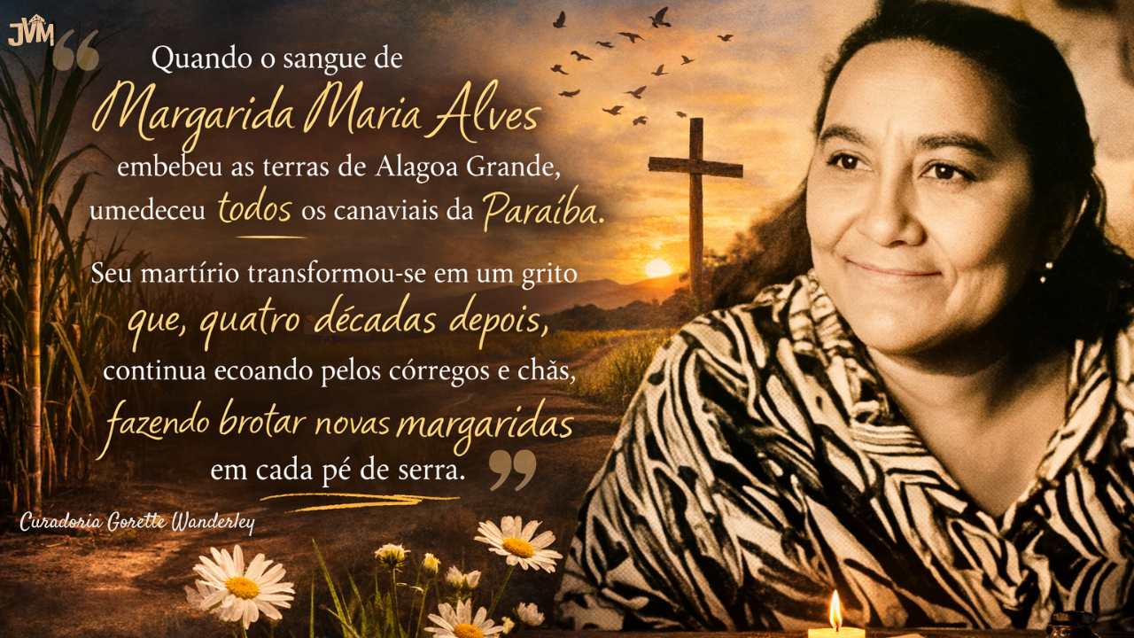 Quando o sangue de Margarida Maria Alves embebeu as terras de Alagoa Grande, umedeceu todos os canaviais da Paraíba. Seu martírio transformou-se em um grito que, quatro décadas depois, continua ecoando pelos córregos e chãs cobertas de cana, fazendo brotar novas margaridas em cada pé de serra.
