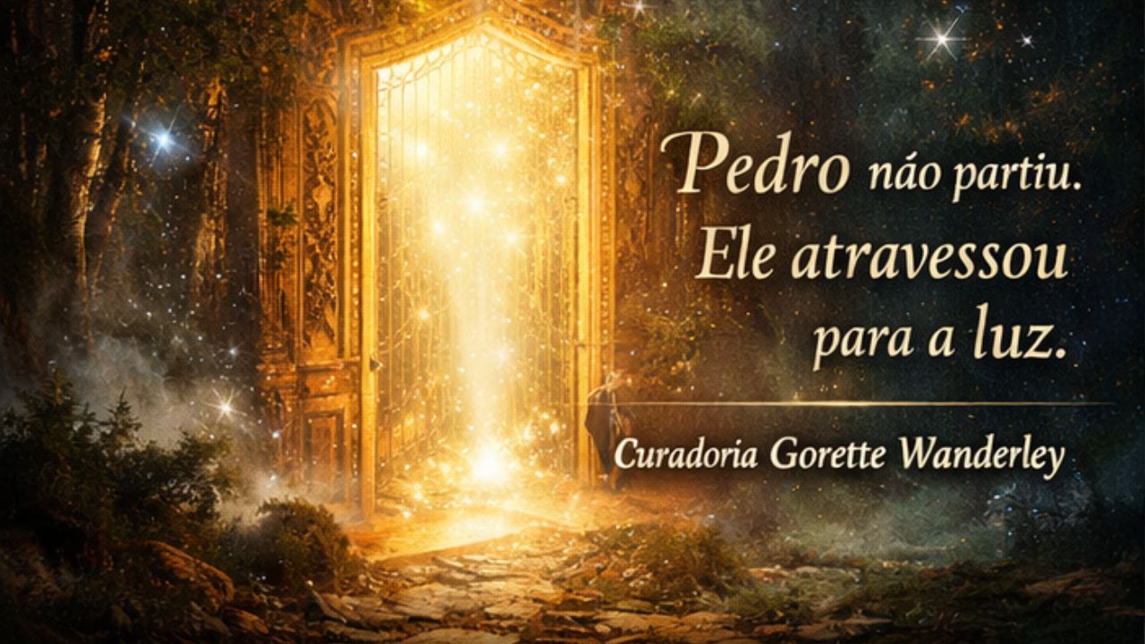 Ao levantar do chão a porta, no lugar onde ela se encontrava abriu-se cratera luminosa de proporções iguais ao seu tamanho. Diante daquilo e em face do impacto inesperado, mestre Pedro caiu no espaço aberto, sumindo cavidade adentro.