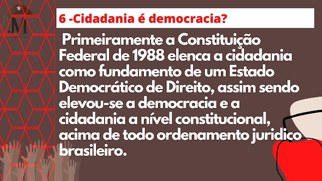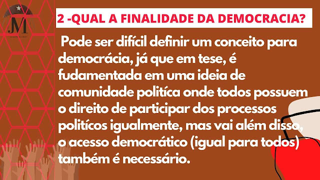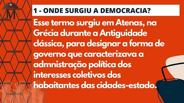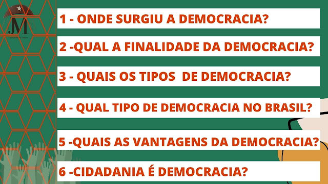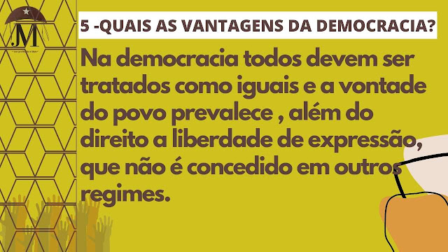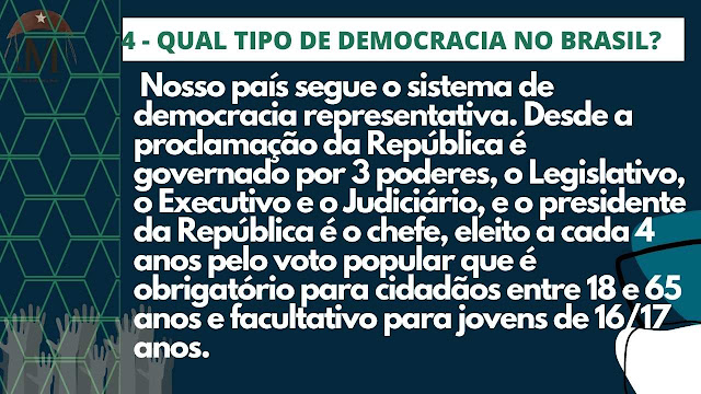 Estou prestes a fazer 16 anos e por direito já poderei votar nas próximas eleições, mesmo sendo facultativo, é do meu interesse exercer meu papel como cidadã ajudando a eleger os próximos governantes do meu pais. Graças a democracia no Brasil tenho essa opção, você sabe o que é democracia?
