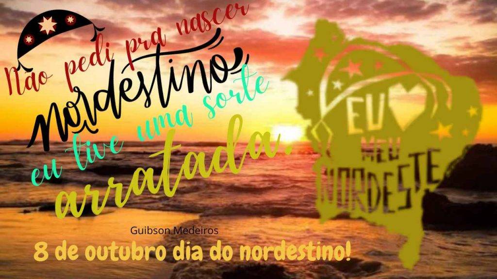 Dia 8 de outubro Tem festejo genuíno Pra enaltecer o povo Que é plural de atino Vai a luta sem demora Por isso se comemora O dia do nordestino Um