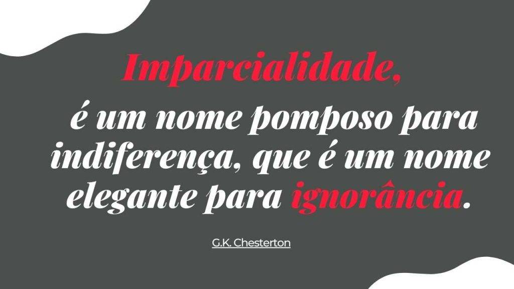 Por: João Vicente Machado Sobrinho; A Imparcialidade total das pessoas é algo muito abstrato e para além disso, é uma utopia. As narrativas da história da humanidade, via de regra